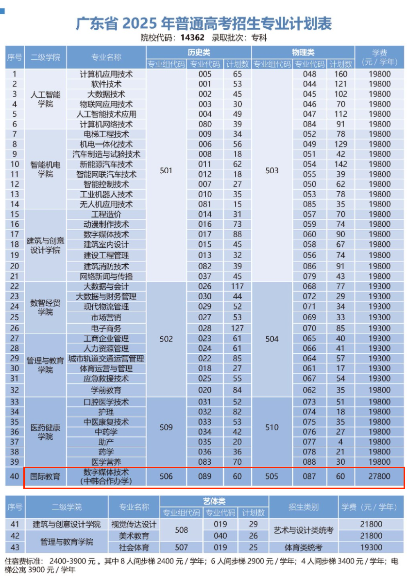 2025广州东华职业学院中外合作办学招生计划-各专业招生人数是多少