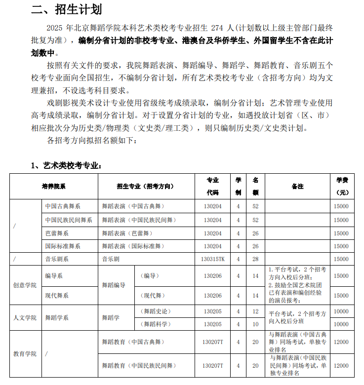本文为大家整理的是北京舞蹈学院2025年招生计划,主要包含招生专业、招生类别、各专业招生人数等信息,希望对大家有所帮助,如有变动或异议,请以各省市教育考试院或学校公布的信息为准。