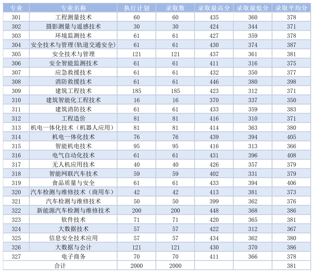 广西安全工程职业技术学院2024年单招各专业录取分数表