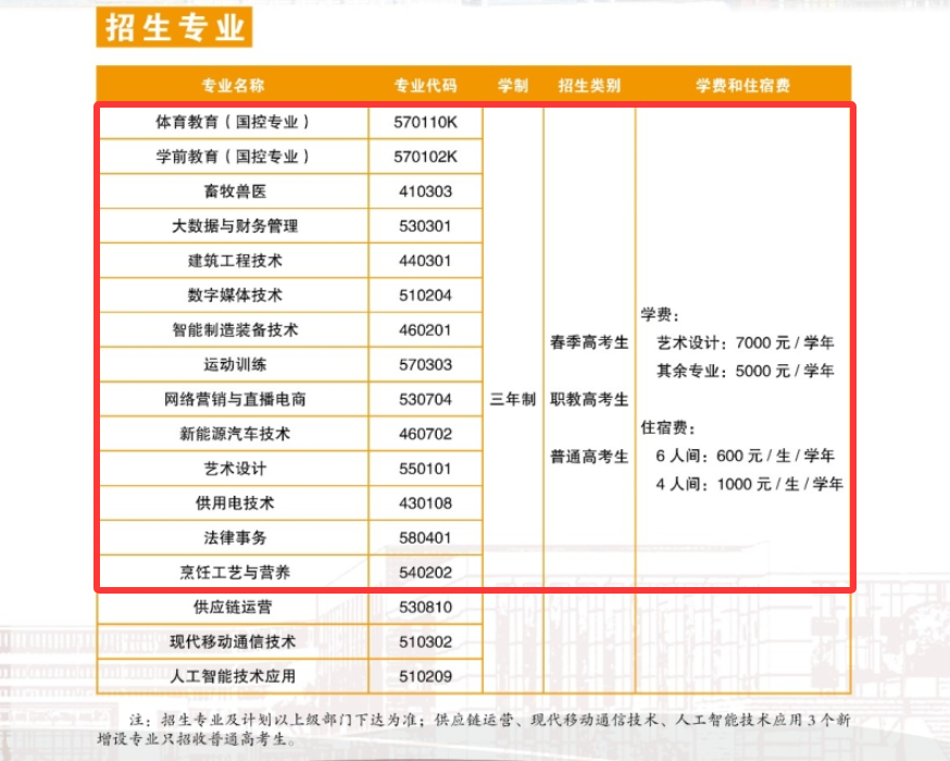 2025昭通职业学院春季招生、职教高考招生学费:艺术设计7000元/学年,其他专业5000元/学年。以下是各专业收费标准,供大家参考。