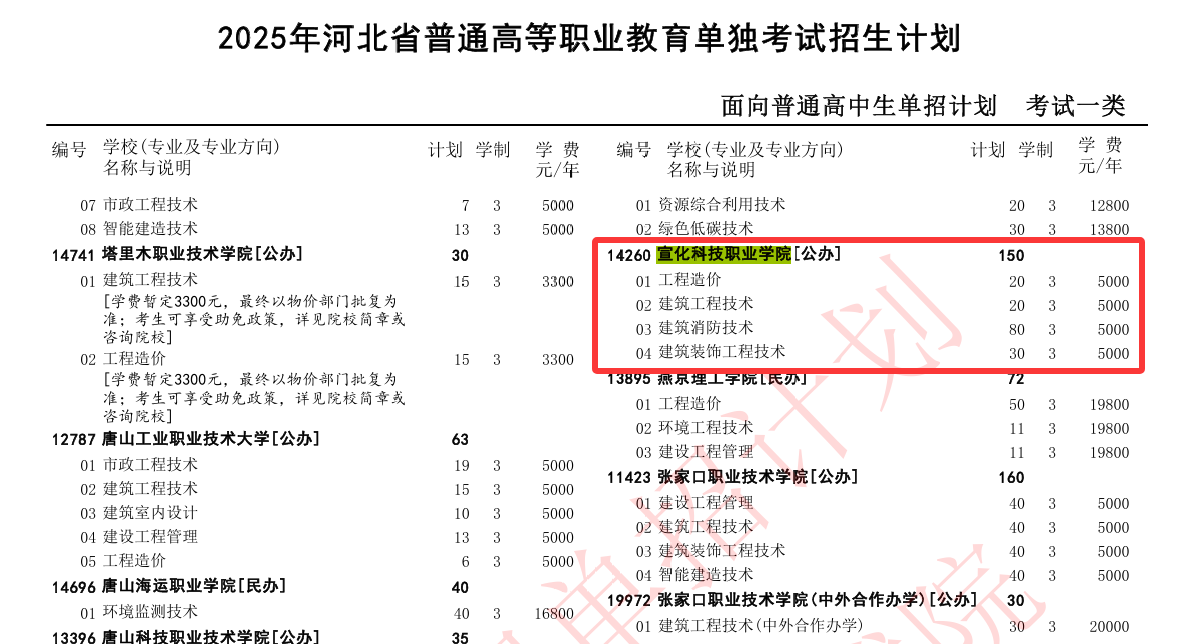 本文为大家整理的是2025宣化科技职业学院单招计划,主要包含招生专业、各专业招生人数等信息,希望对大家有所帮助,如有变动或异议,请以各省市教育考试院或学校公布的信息为准。