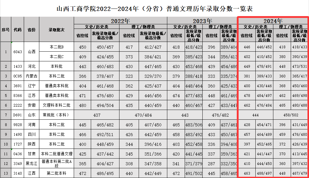 本文为大家整理的是山西工商学院2020-2024年录取分数线,希望对大家有所帮助,如有异议,还请以各省市教育考试院和学校公布的信息为准。