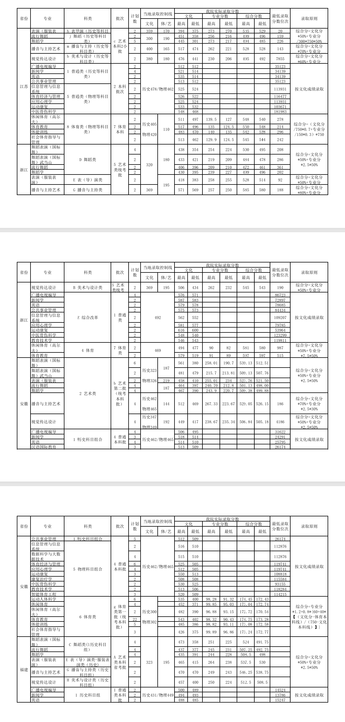 2023年分省分专业录取分数情况统计表