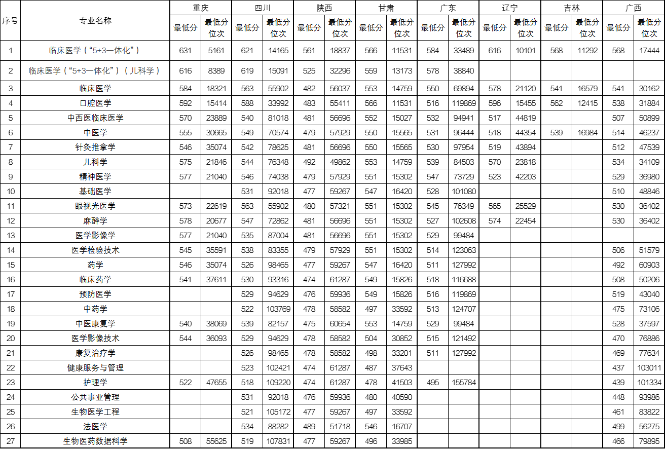 3、2020-2022新疆医科大学录取分数线【新疆】