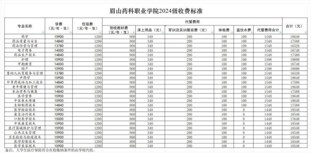 2025眉山药科职业学院学费多少钱一年-各专业收费标准