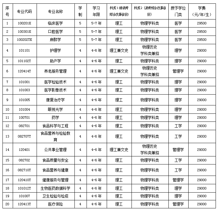 锦州医科大学医疗学院有临床医学、口腔医学、麻醉学、护理学、助产学、养老服务管理、医学检验技术、医学影像技术、康复治疗学、眼视光学等专业,以下是具体名单一览表,供大家参考,由于专业设置可能会变动,正式填报时需要以学校最新公布的数据为准。