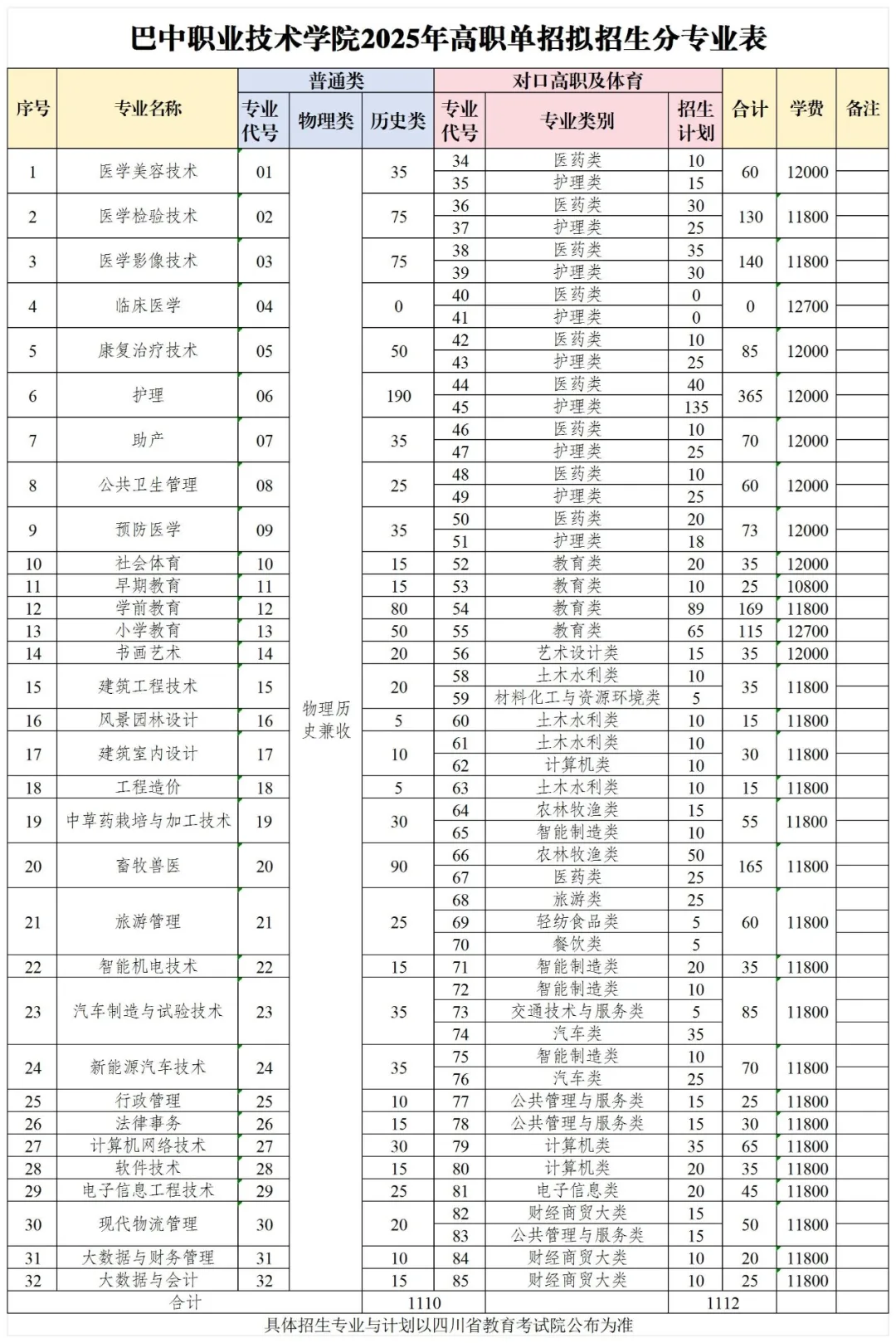 本文为大家整理的是2025巴中职业技术学院单招计划,主要包含招生专业、各专业招生人数等信息,希望对大家有所帮助,如有变动或异议,请以各省市教育考试院或学校公布的信息为准。