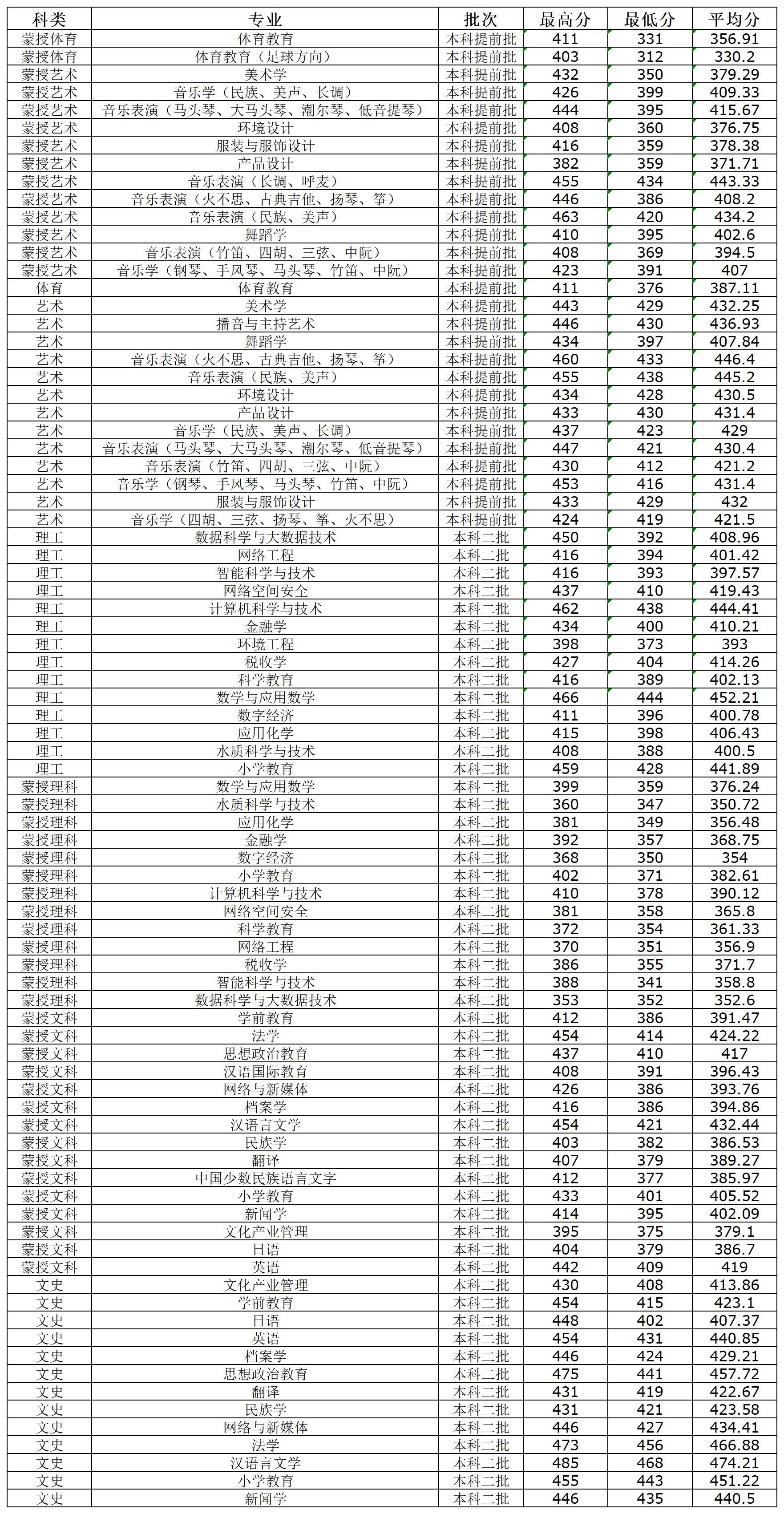 3、2022呼和浩特民族学院录取分数线
