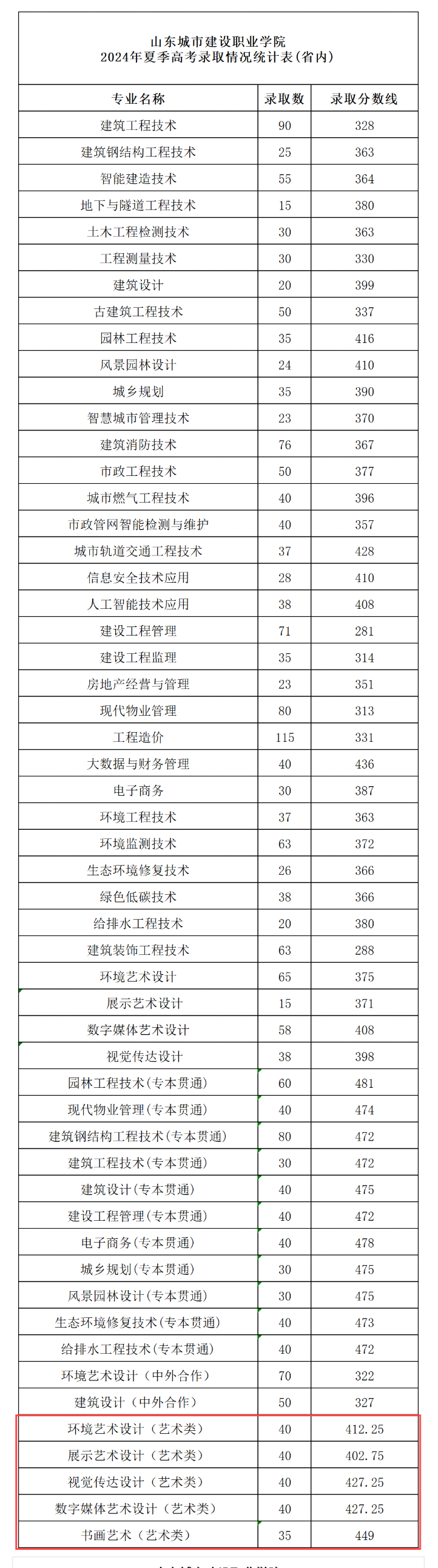 本文为大家整理的是山东城市建设职业学院2022-2024年艺术类录取分数线,希望对大家有所帮助,如有异议,还请以各省市教育考试院和学校公布的信息为准。