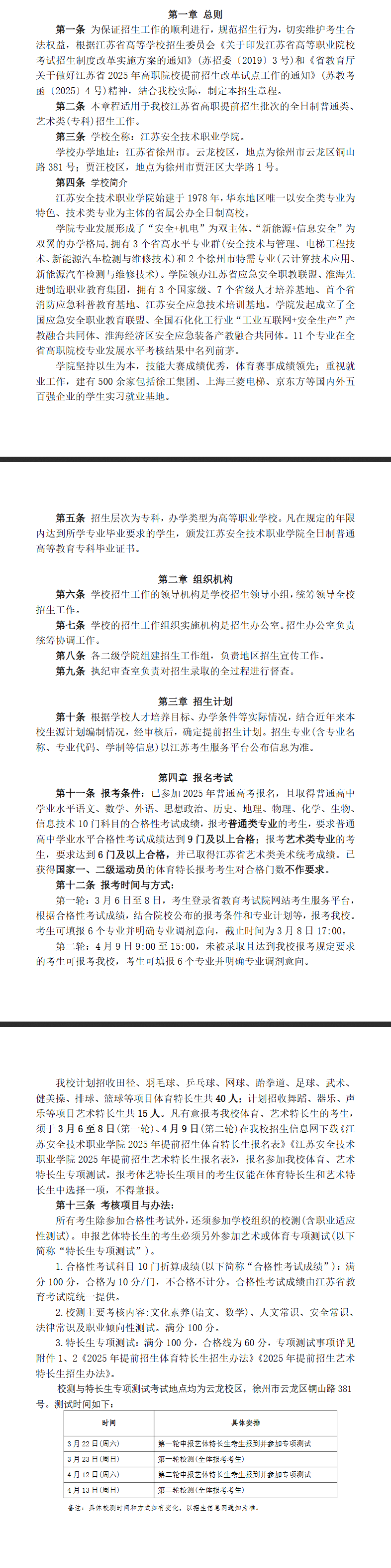 江苏安全技术职业学院2025年提前招生章程